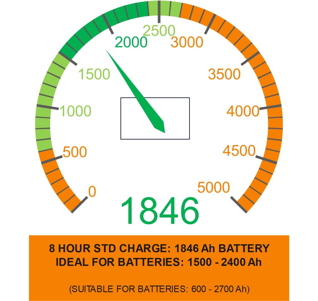The orange and green chart (last image in the product gallery) will assist you to select your required Battery Charger. Simply compare your Electric Forklift Battery Capacity (Ah) at the top of the chart with your Battery Voltage (24V, 36V, 48V or 80V) on the side of the chart to determine your Battery Charger model. Light green indicates that the charger is ‘suitable’ and dark green indicates that the battery charger is ‘ideal’ for your particular electric forklift.