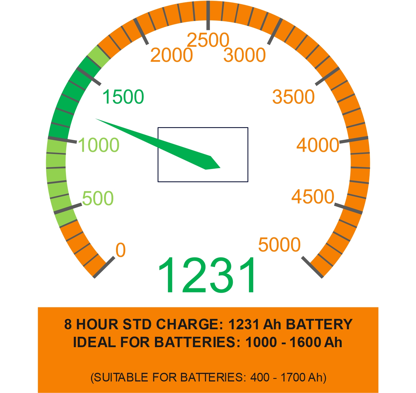 The orange and green chart (last image in the product gallery) will assist you to select your required Battery Charger. Simply compare your Electric Forklift Battery Capacity (Ah) at the top of the chart with your Battery Voltage (24V, 36V, 48V or 80V) on the side of the chart to determine your Battery Charger model. Light green indicates that the charger is ‘suitable’ and dark green indicates that the battery charger is ‘ideal’ for your particular electric forklift.